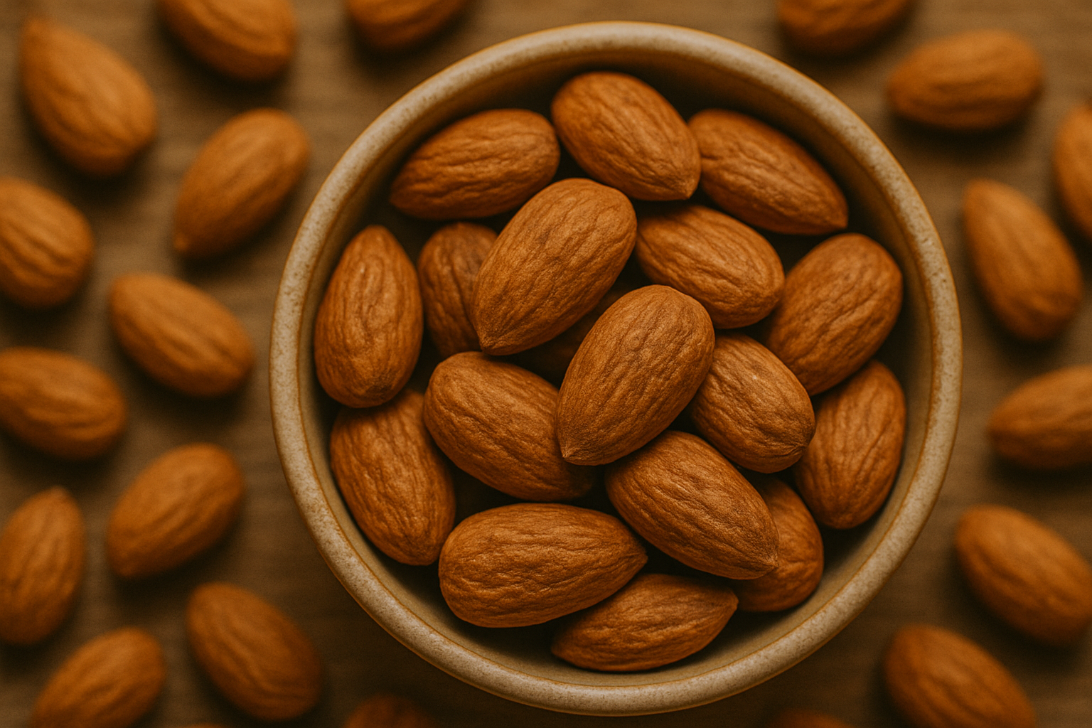 Le mandorle di Avola contengono 28,23 mg di Vitamina E e 305,44 mg di Calcio, offrendo un apporto significativamente superiore di nutrienti essenziali per la salute ossea e antiossidante.