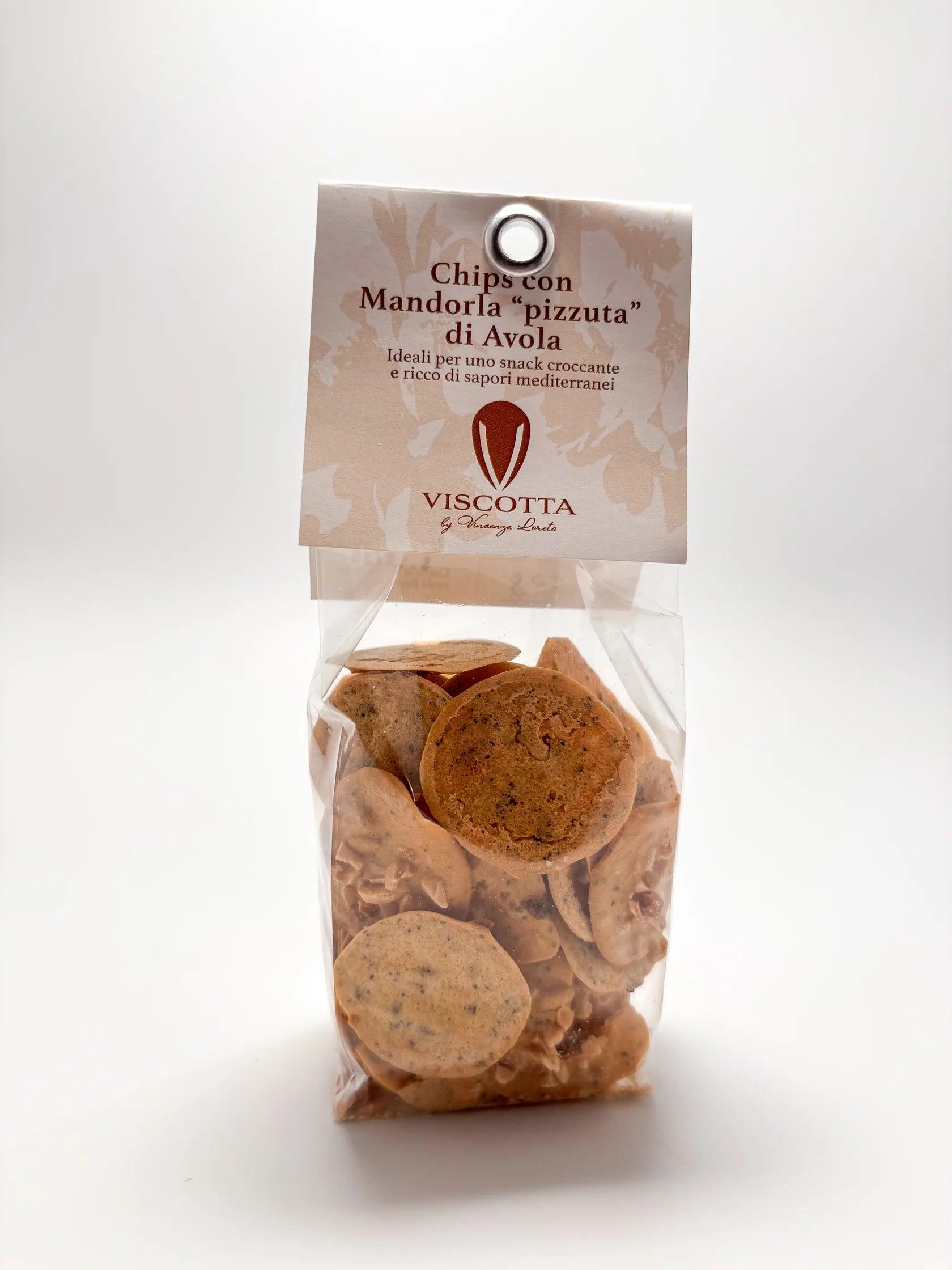 linea snack parte della box Oscar. Chips croccanti senza glutine con farina di ceci e con mandorla Pizzuta d’Avola; aromatizzati con rosmarino, salvia e timo e arricchiti da un mix di semi di papavero, girasole, lino e sesamo.
